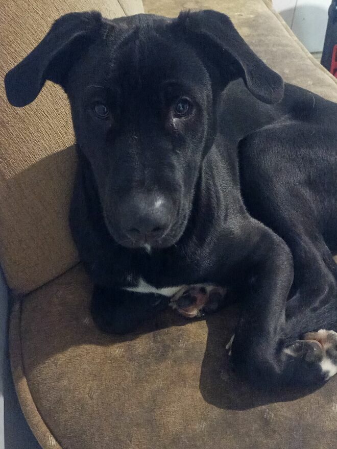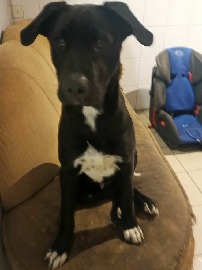 Witam niestety muszę oddać w dobre ręce Psiaka wzrost 50 cm max wzrost do 80 cm typowo do obrony na podwórku lecz nie łańcuch do tej pory w mieszkaniu w domku śpi mam inne mniejsze psiaki i ten potrzebuje dużo ruchuMieszaniec labradora z amstafem
