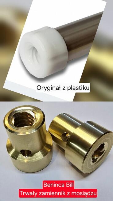 Cena 98,40 zł - dotyczy 1 szt. Śruba, tuleja z wewnętrznym gwintem trapezowym wykonana z mosiądzu i przeznaczona ...