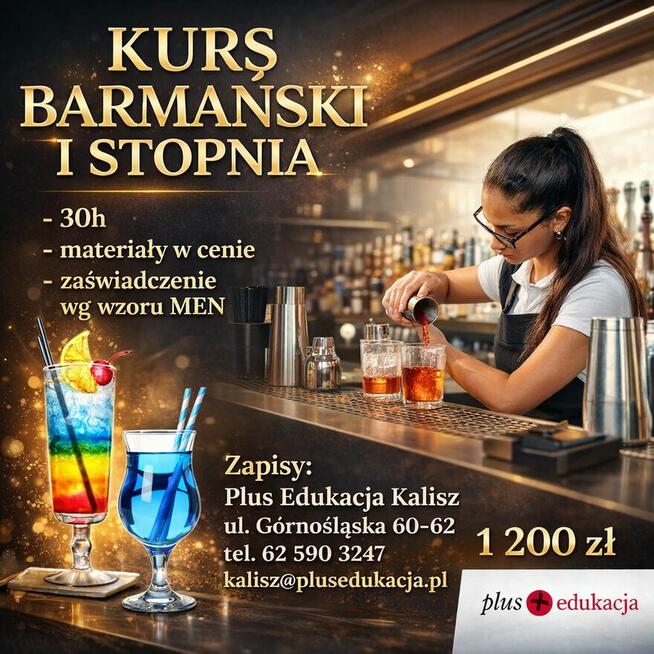 KURS BARMAŃSKI I STOPNIA 30 godzin szkoleniowych Termin: 27.02.2026 =>godz. 15:00-21:00 28.02.2026 => godz. ...